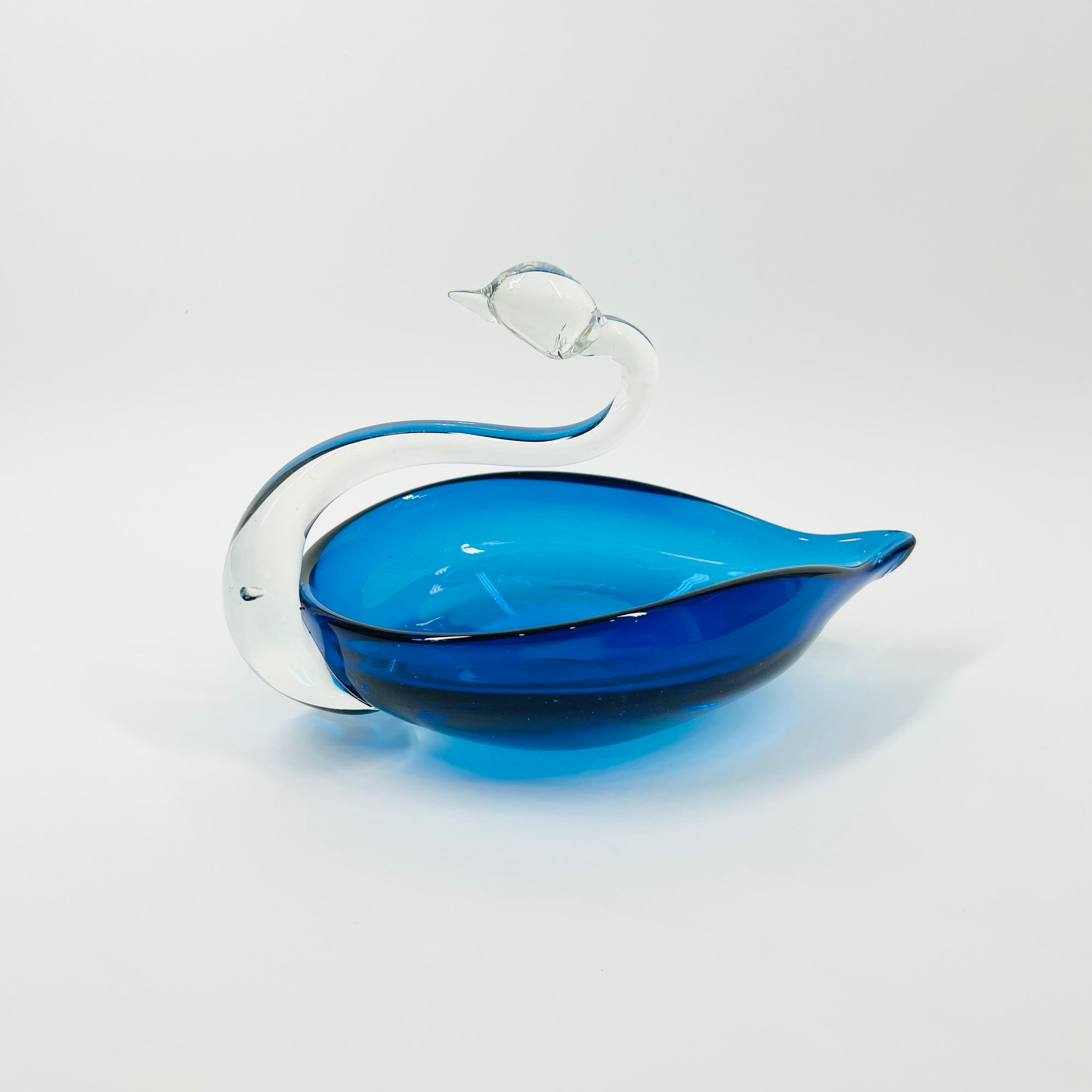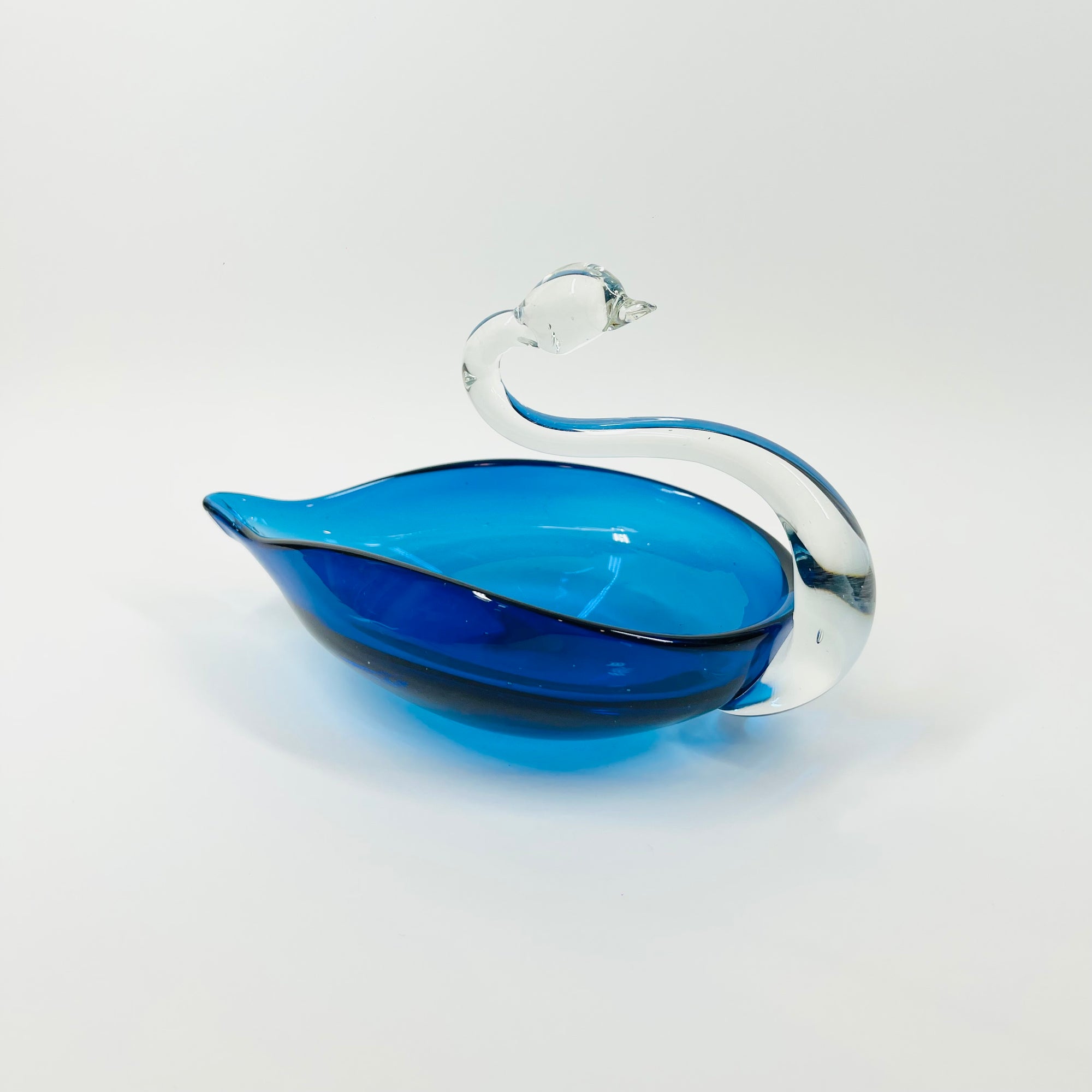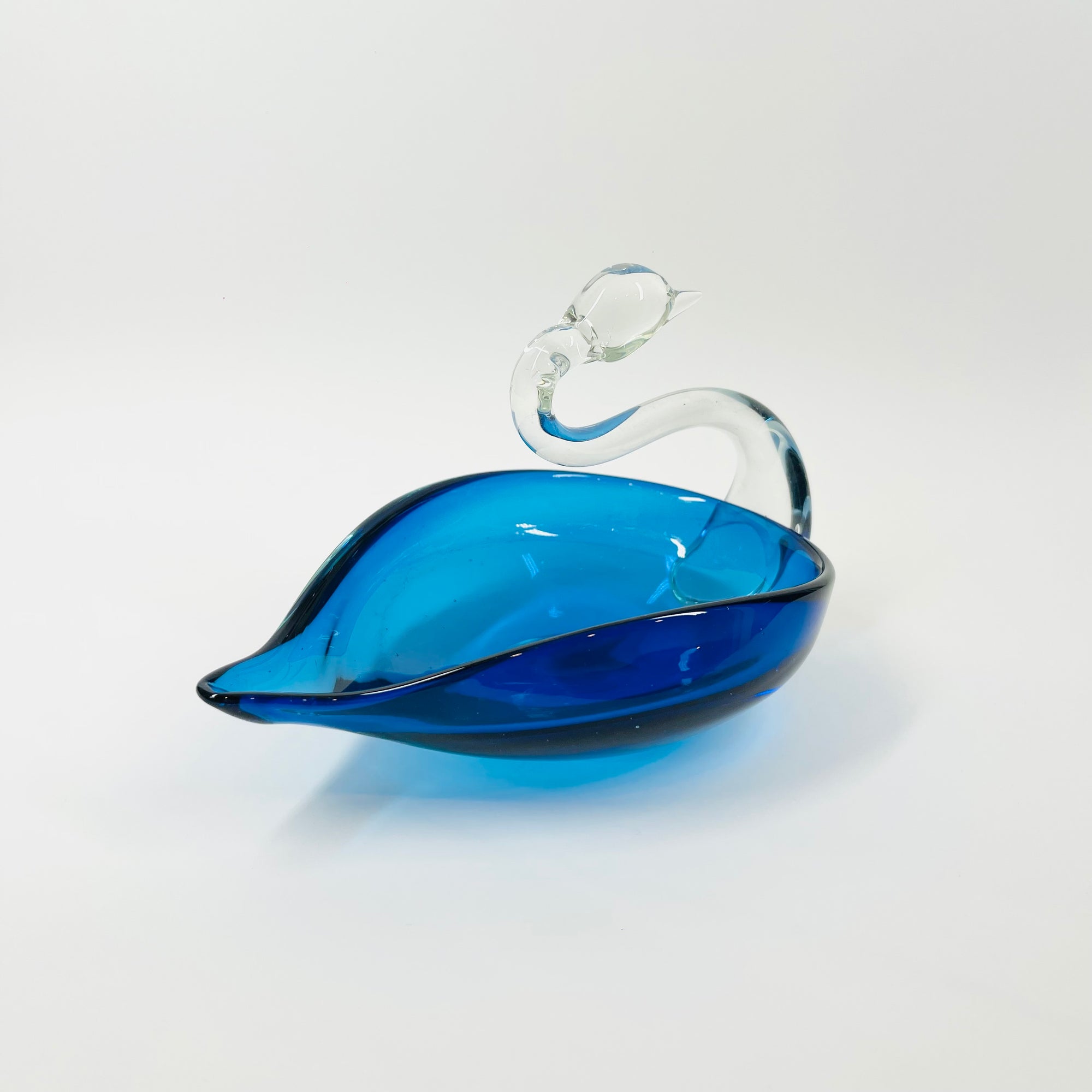 1970s JAPANESE BLUE GLASS SWAN PIN DISH