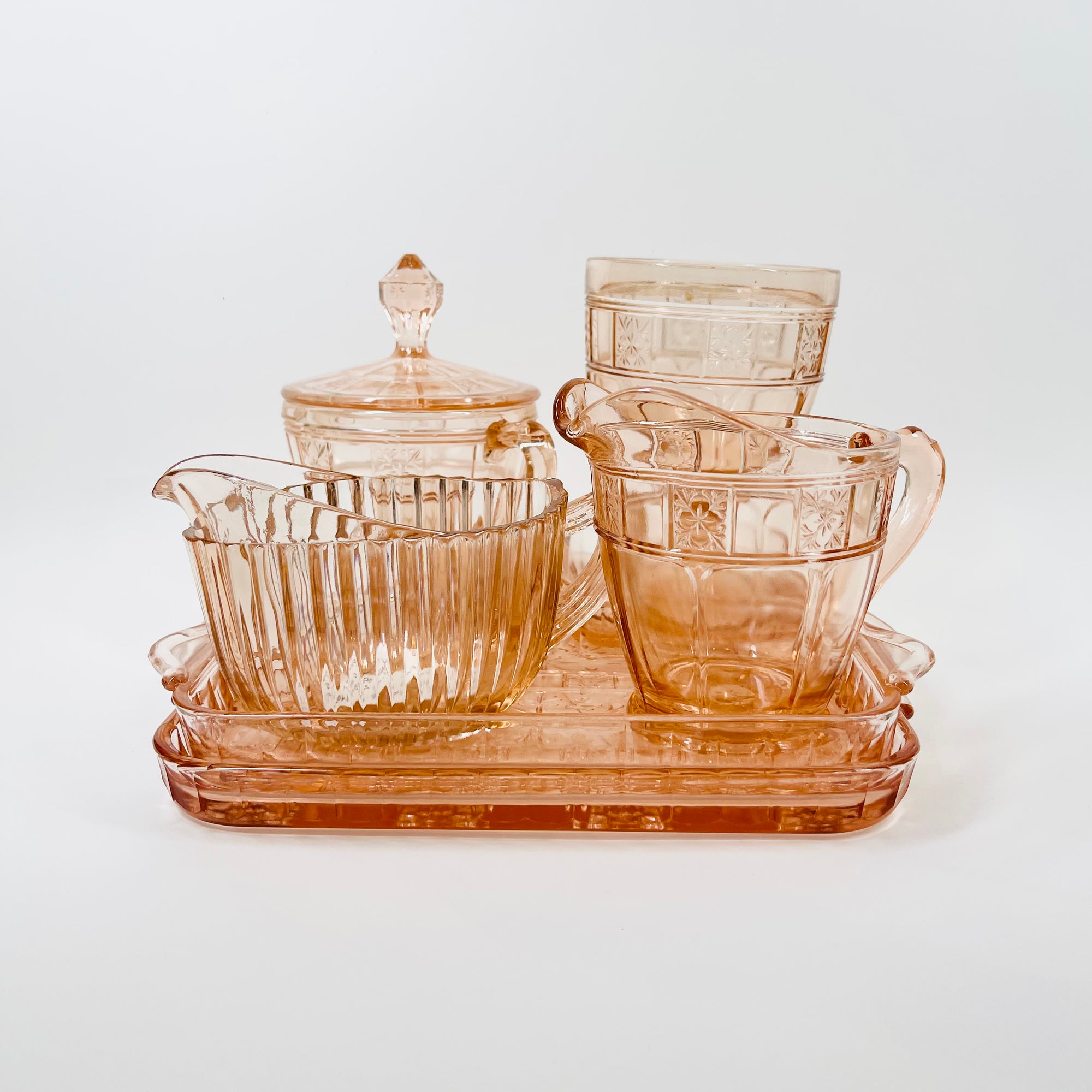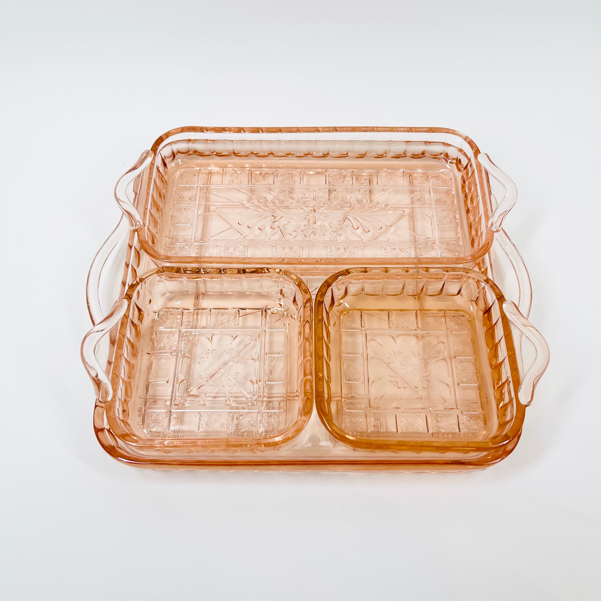ANTIQUE PRESSED DEPRESSION PINK GLASS TRAY