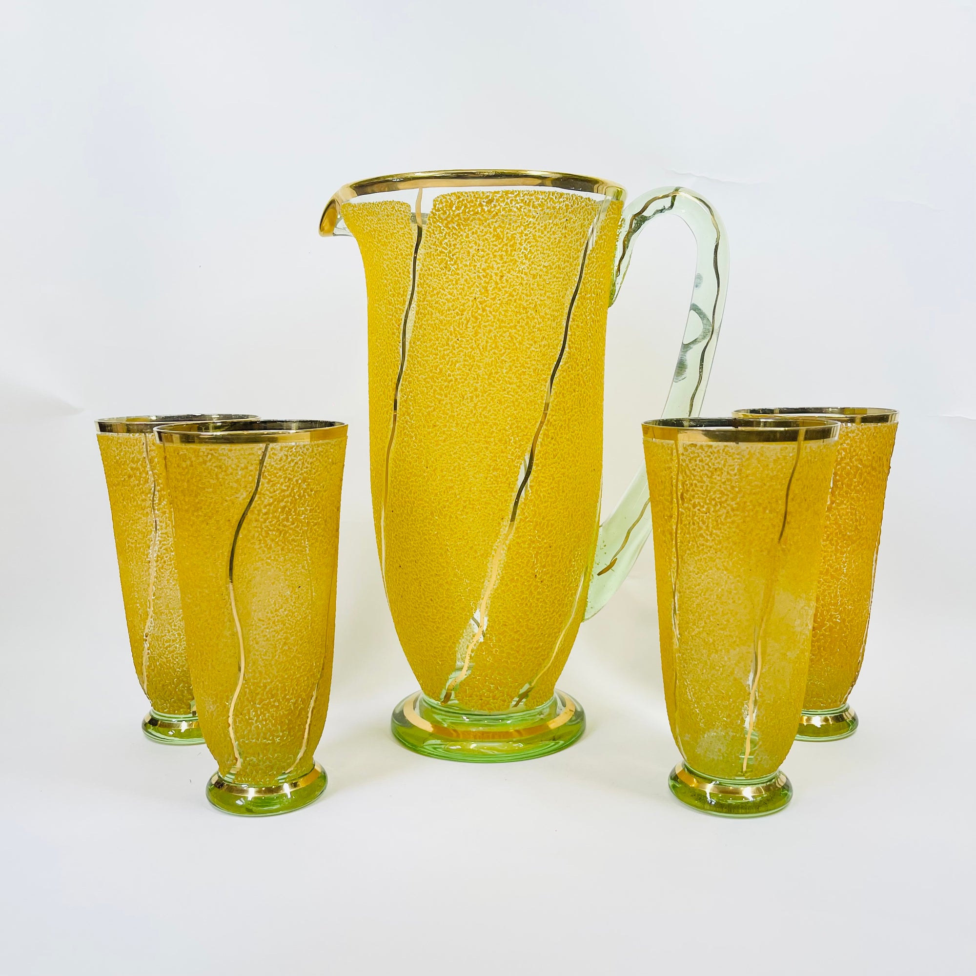 MIDCENTURY FINNISH URANIUM GLASS JUG SET BY NANNY STILL FOR RIIHIMAEN LASI