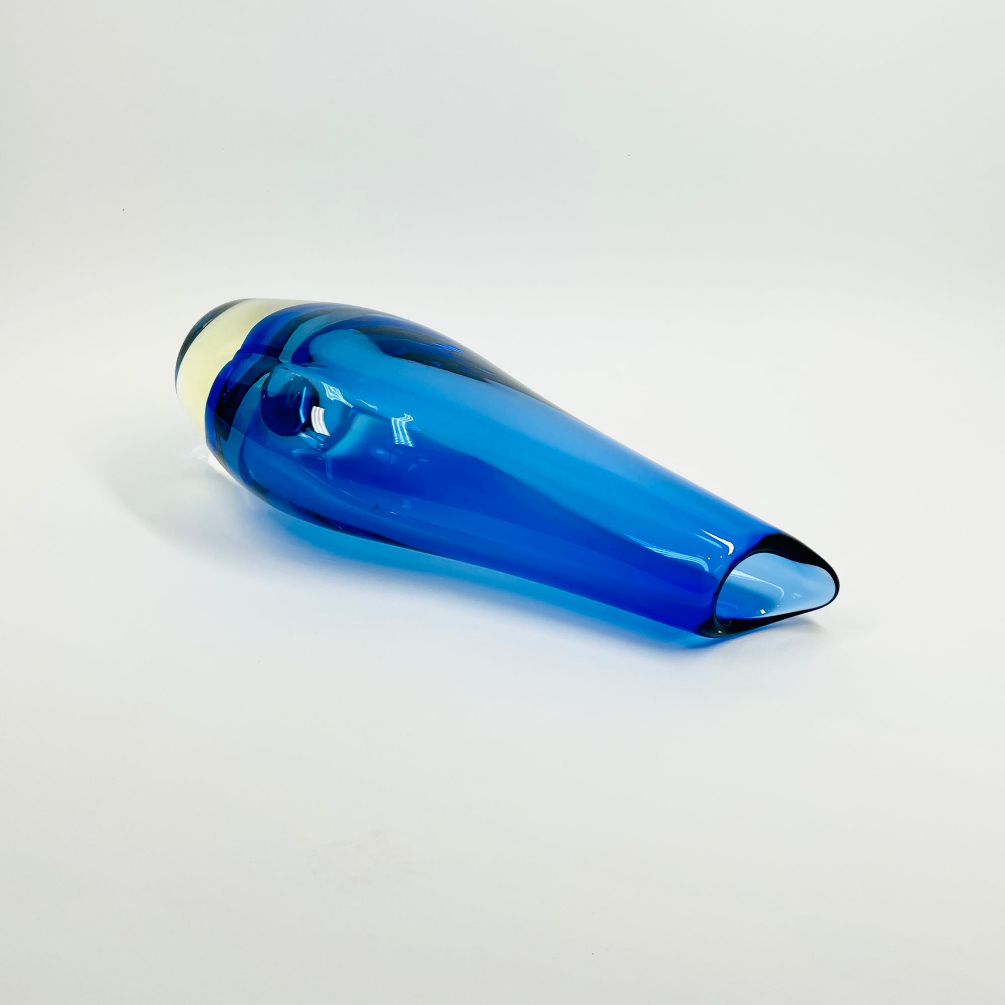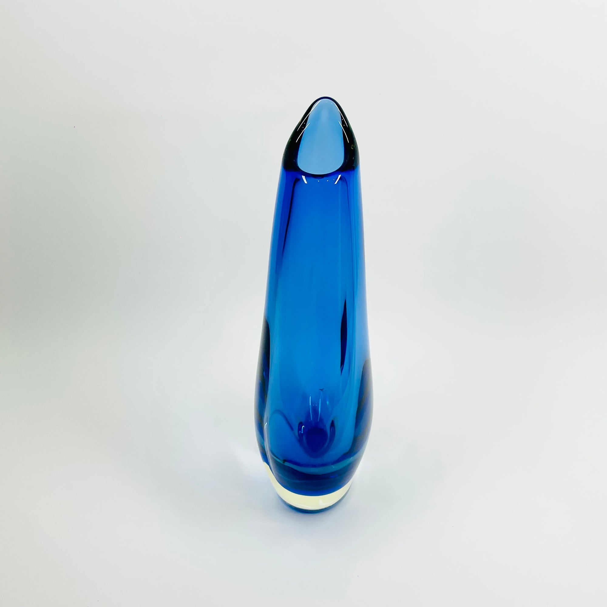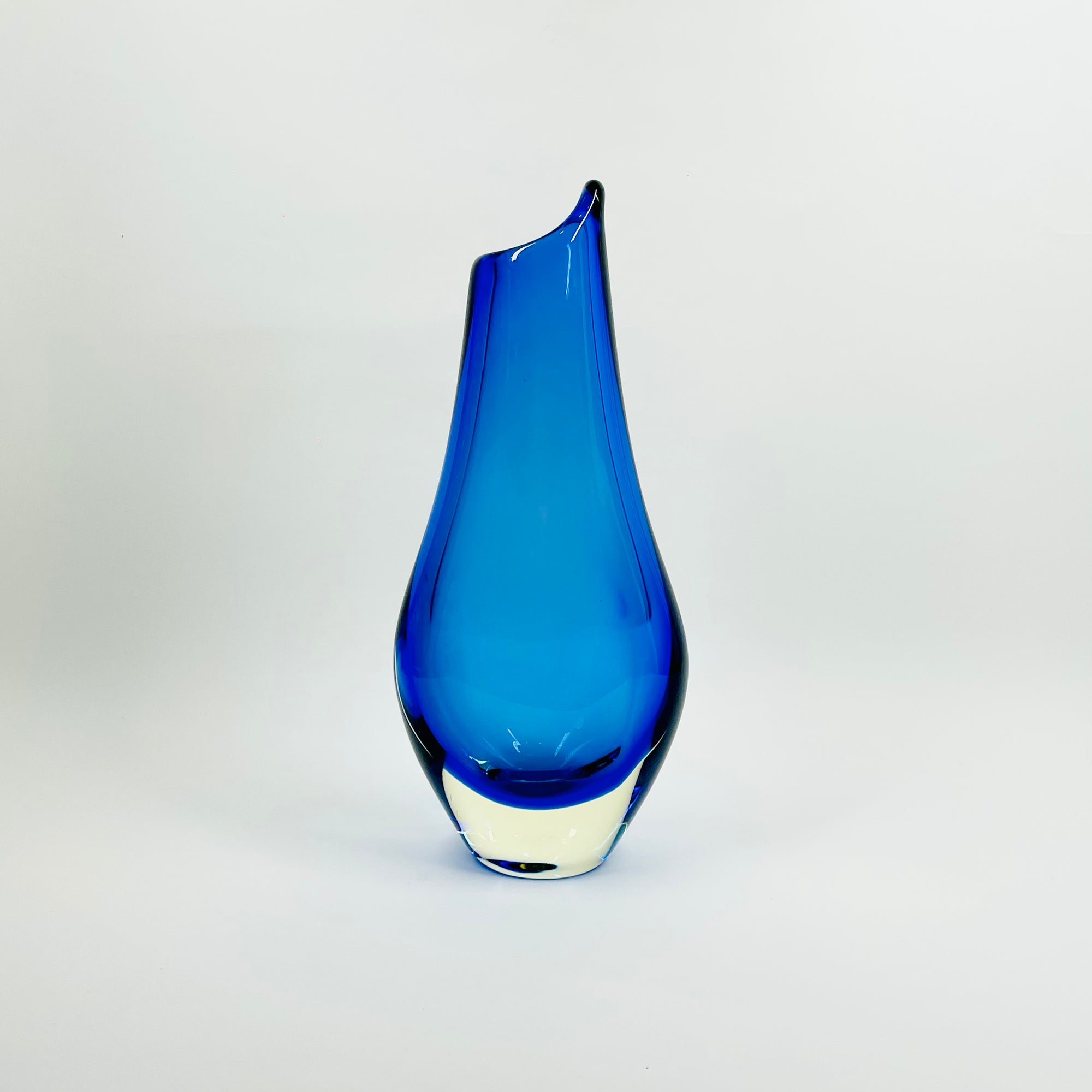 1960s CZECH COBALT BLUE SOMMERSO GLASS SILHOUETTE VASE BY ZELEZNY