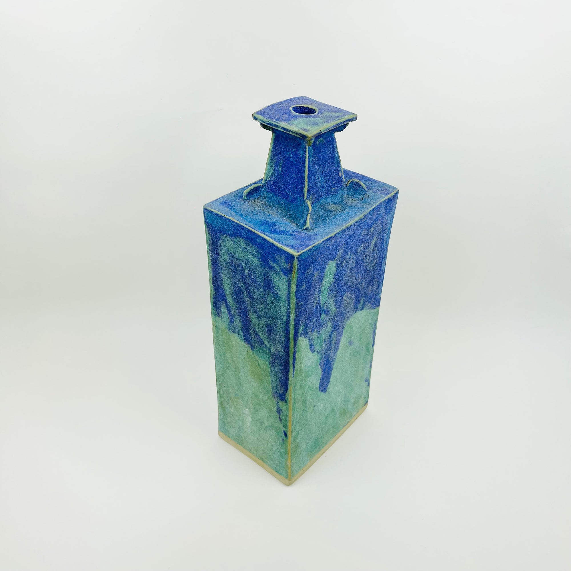1960s FONNISH BLUE GREEN GLAZED SAND VASE BY ANNIKKI HOVISA
