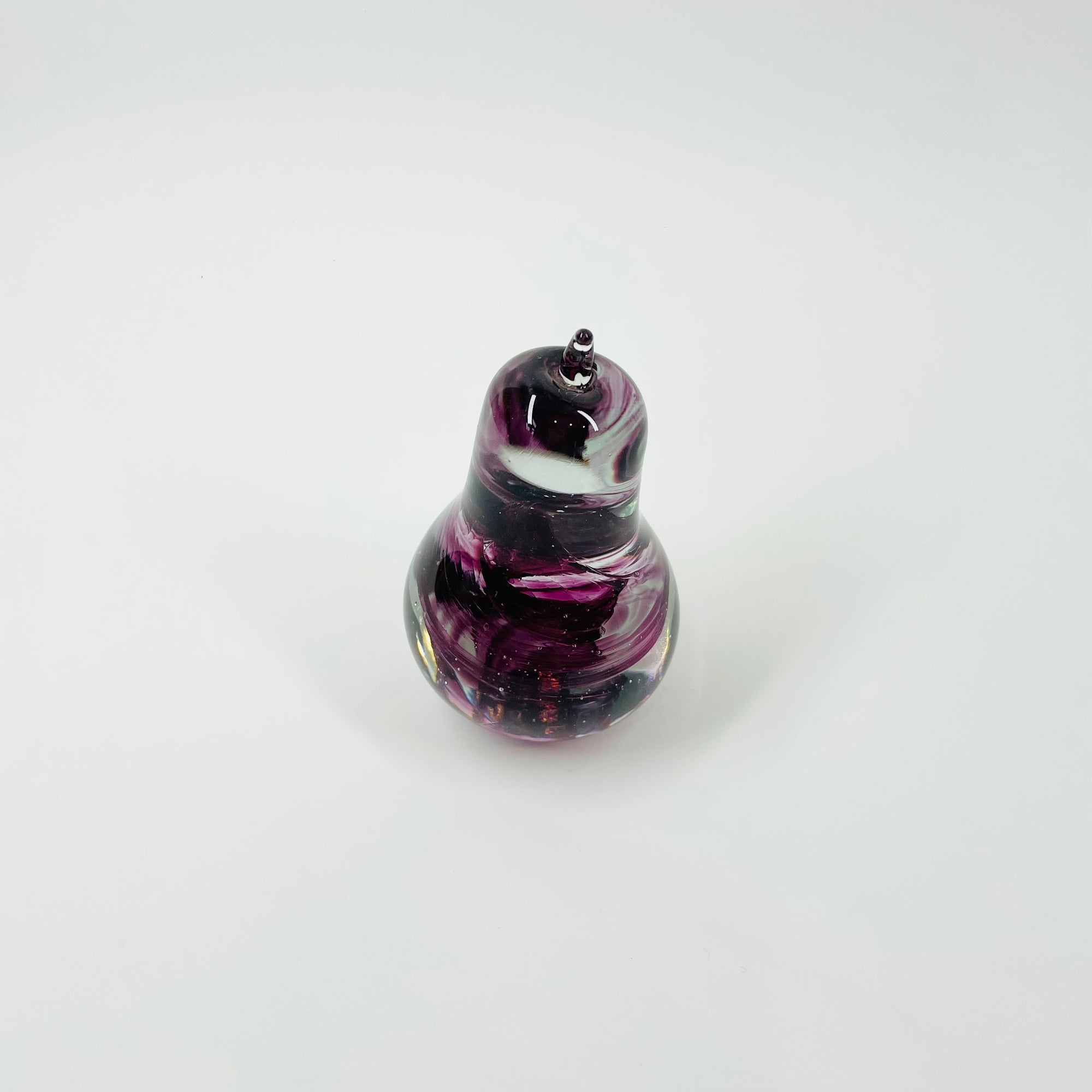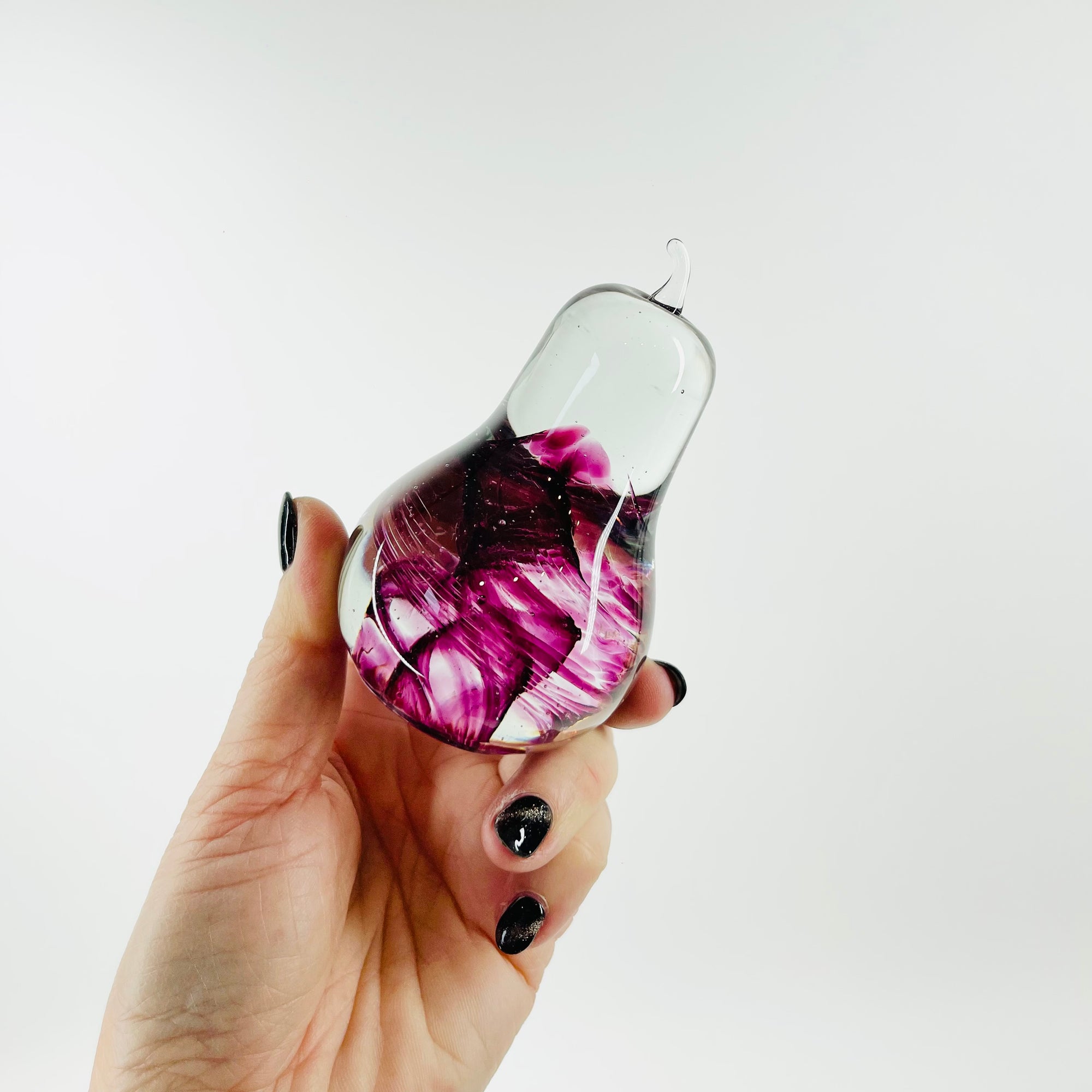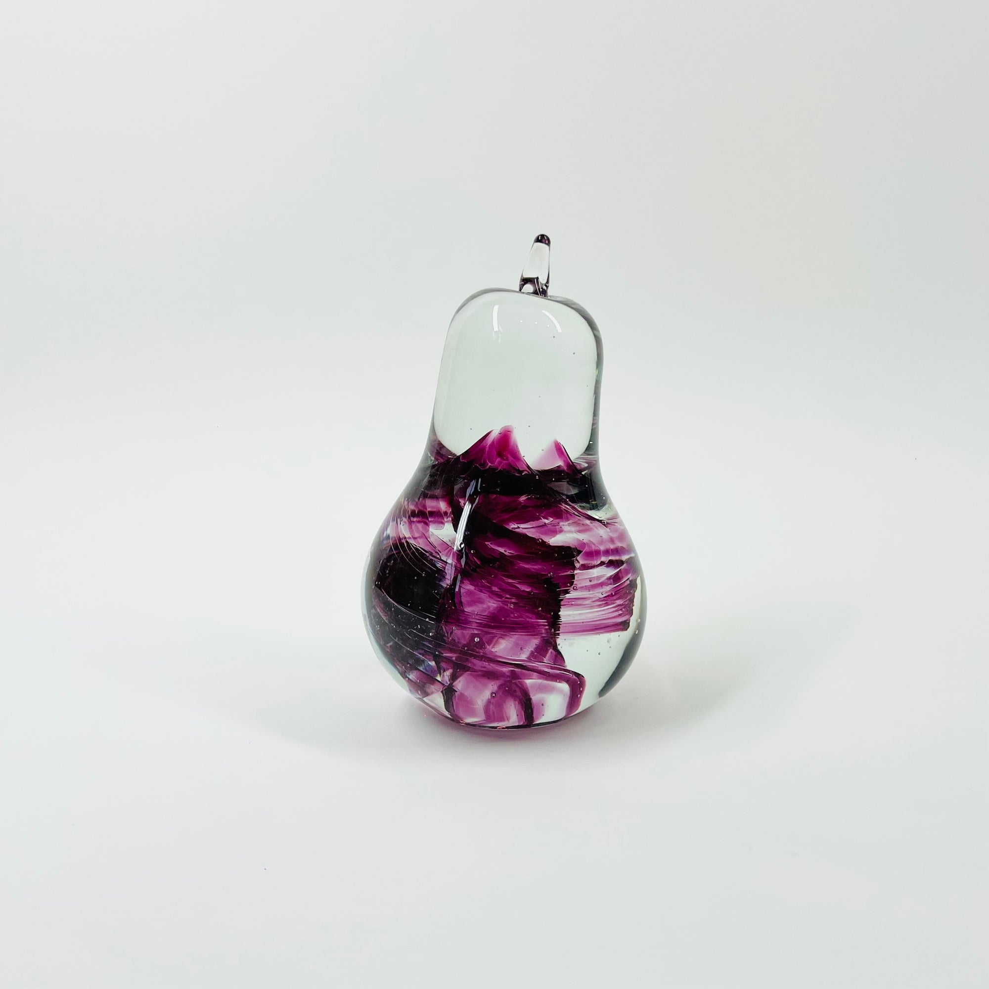 1990s PINK SWIRLS ABSTRACT GLASS PEAR PAPERWEIGHT