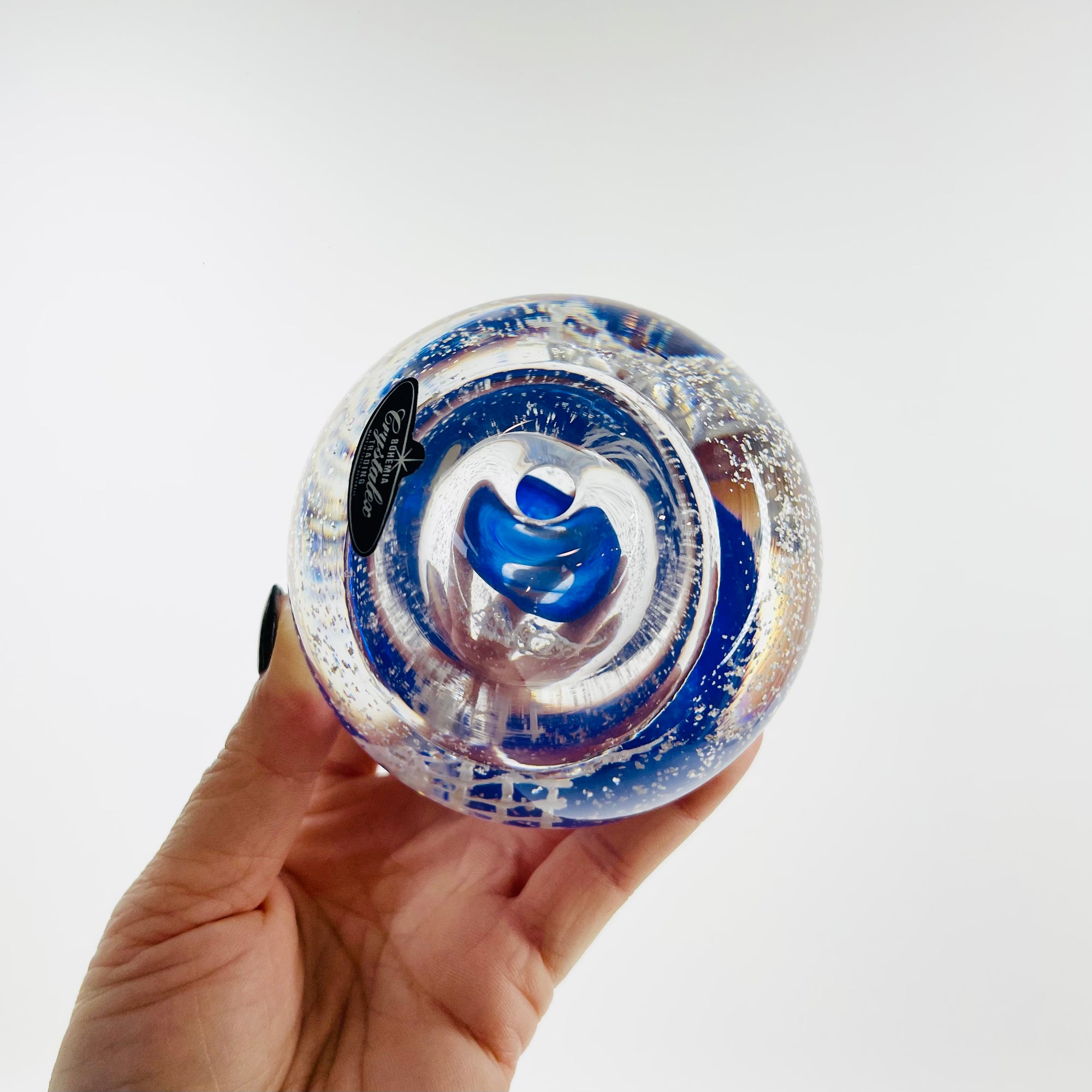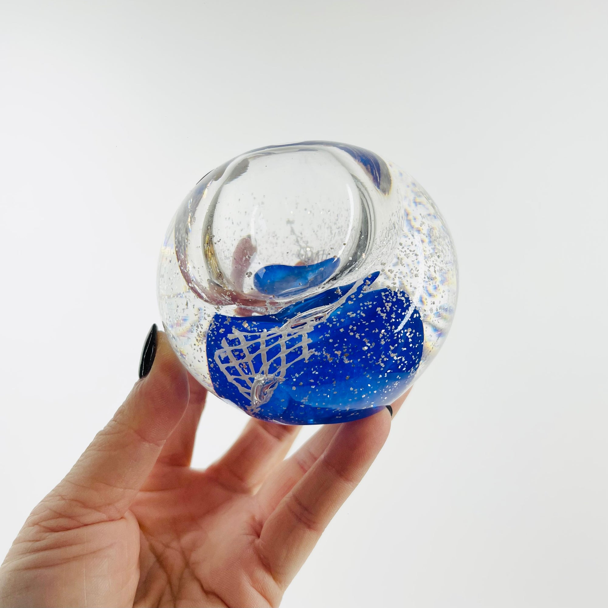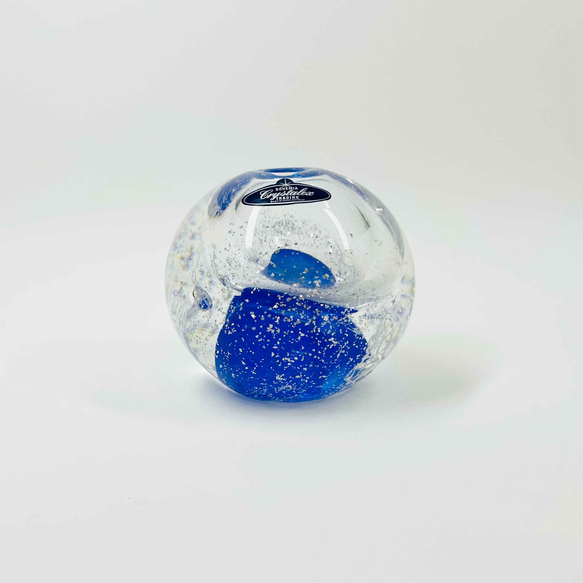 VINTAGE CZECH BLUE AVENTURINE ABSTRACT PAPERWEIGHT MINI VASE