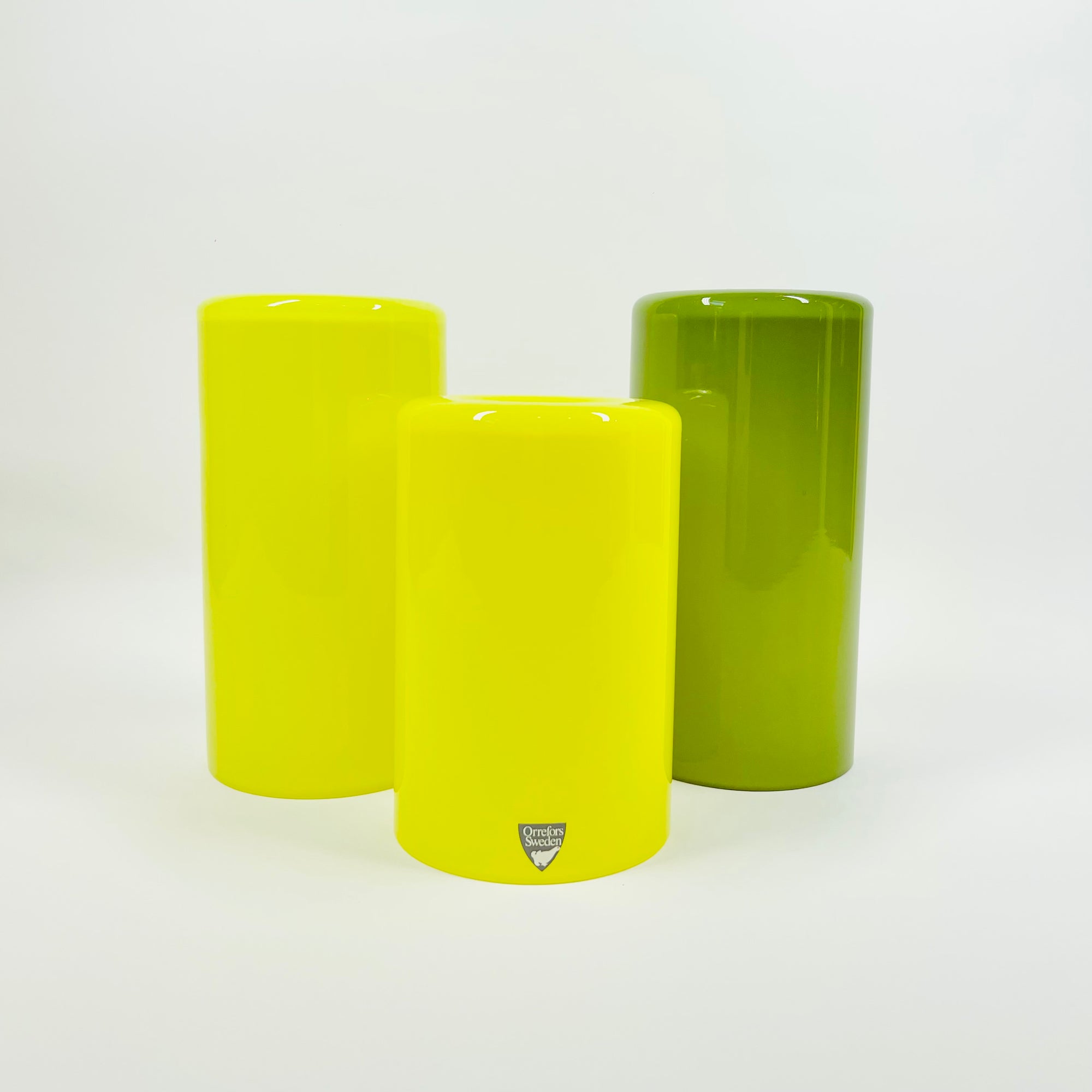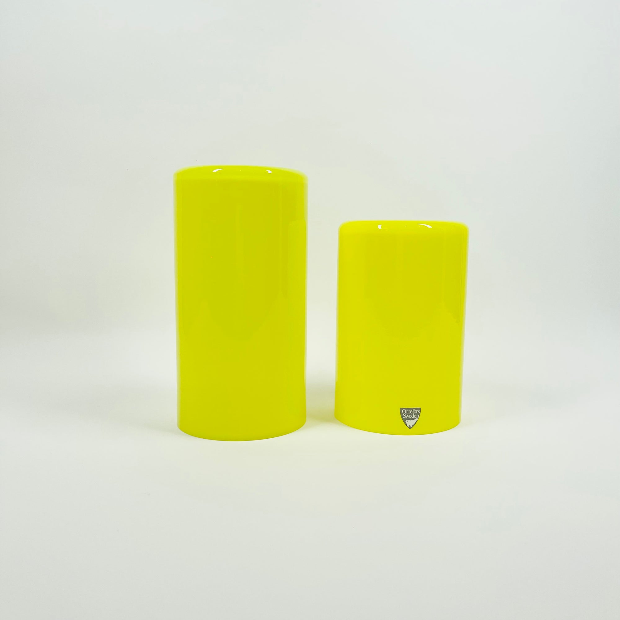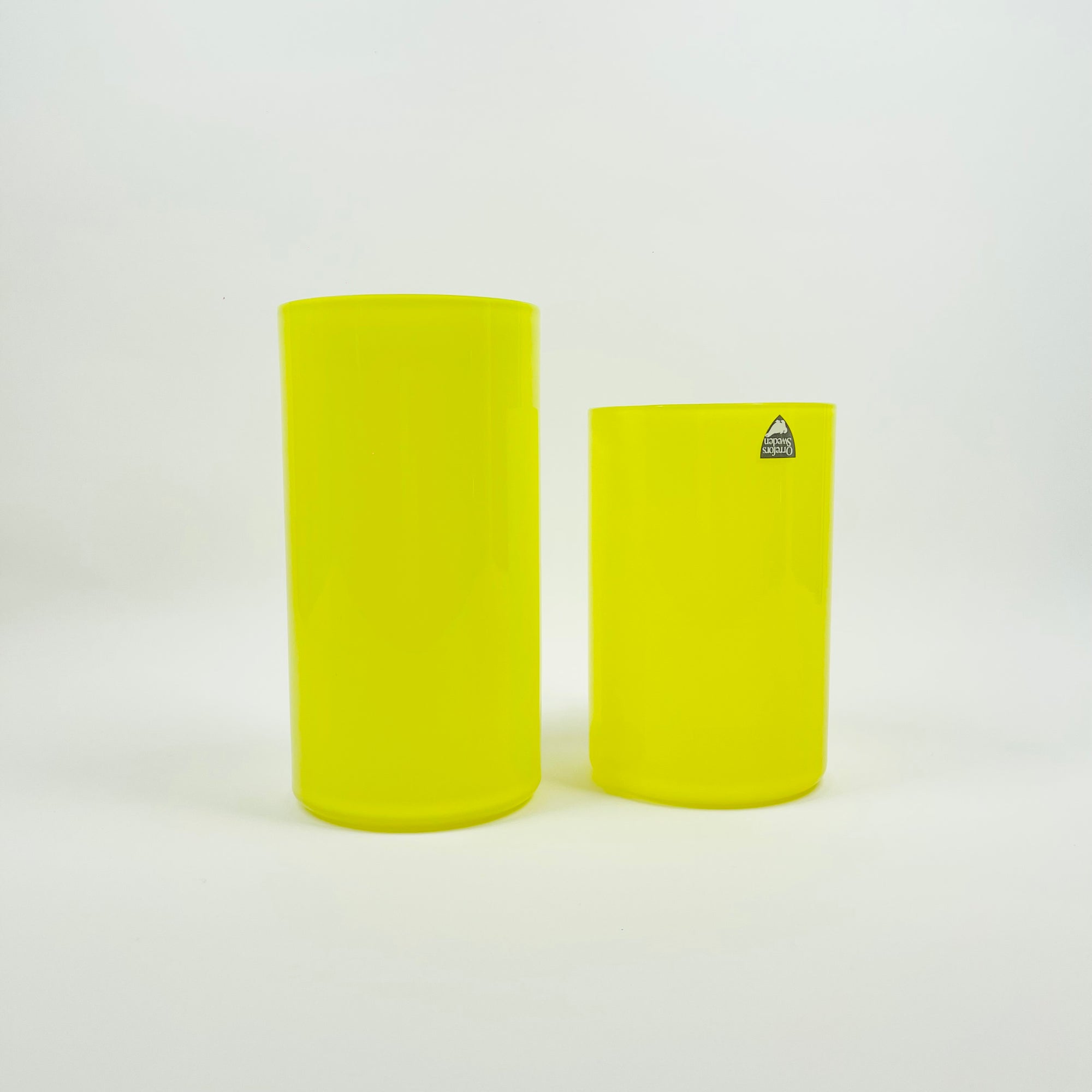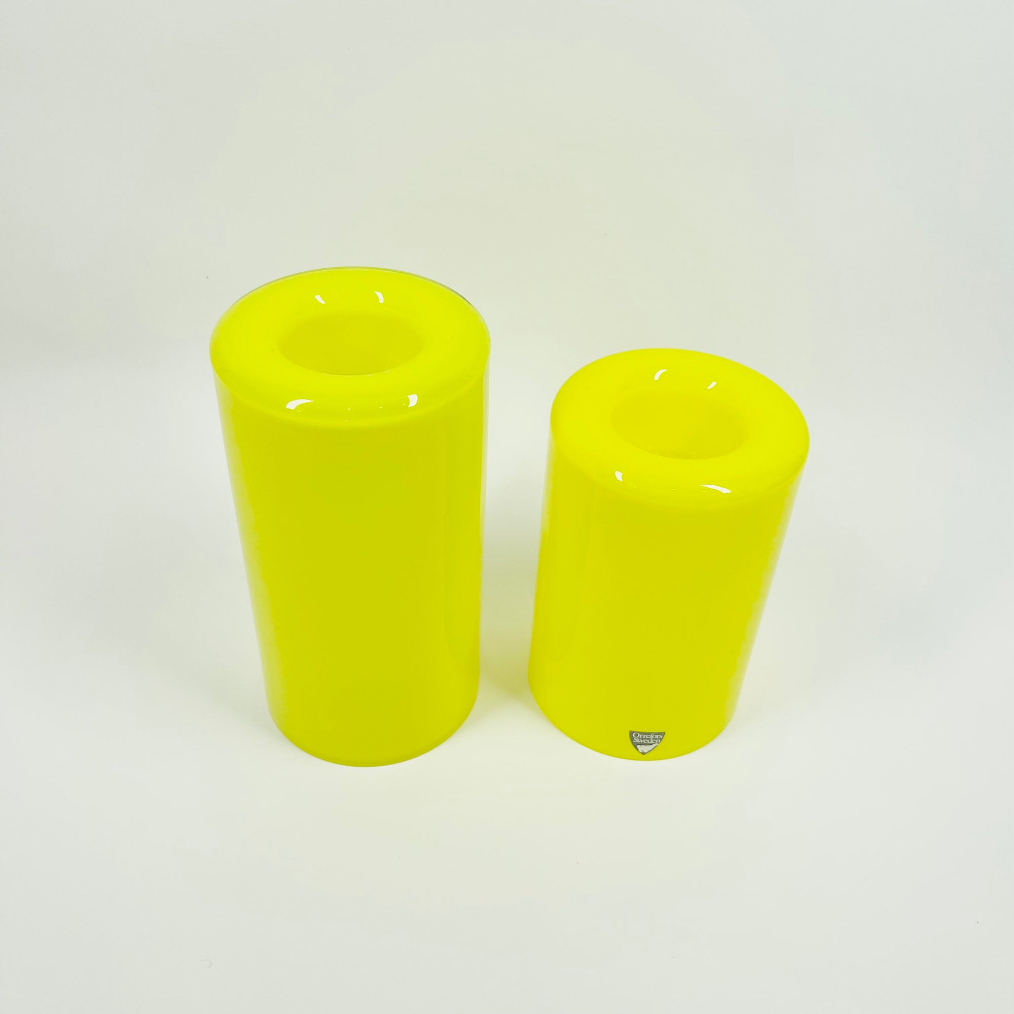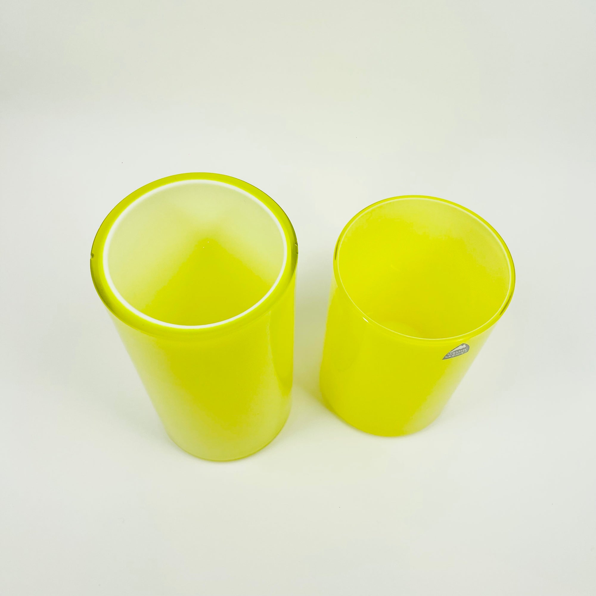 1960s YELLOW LEMON OPALESCENT GLASS POSY VASE BY ARTHUR PERLY FOR SKRUF GLAS
