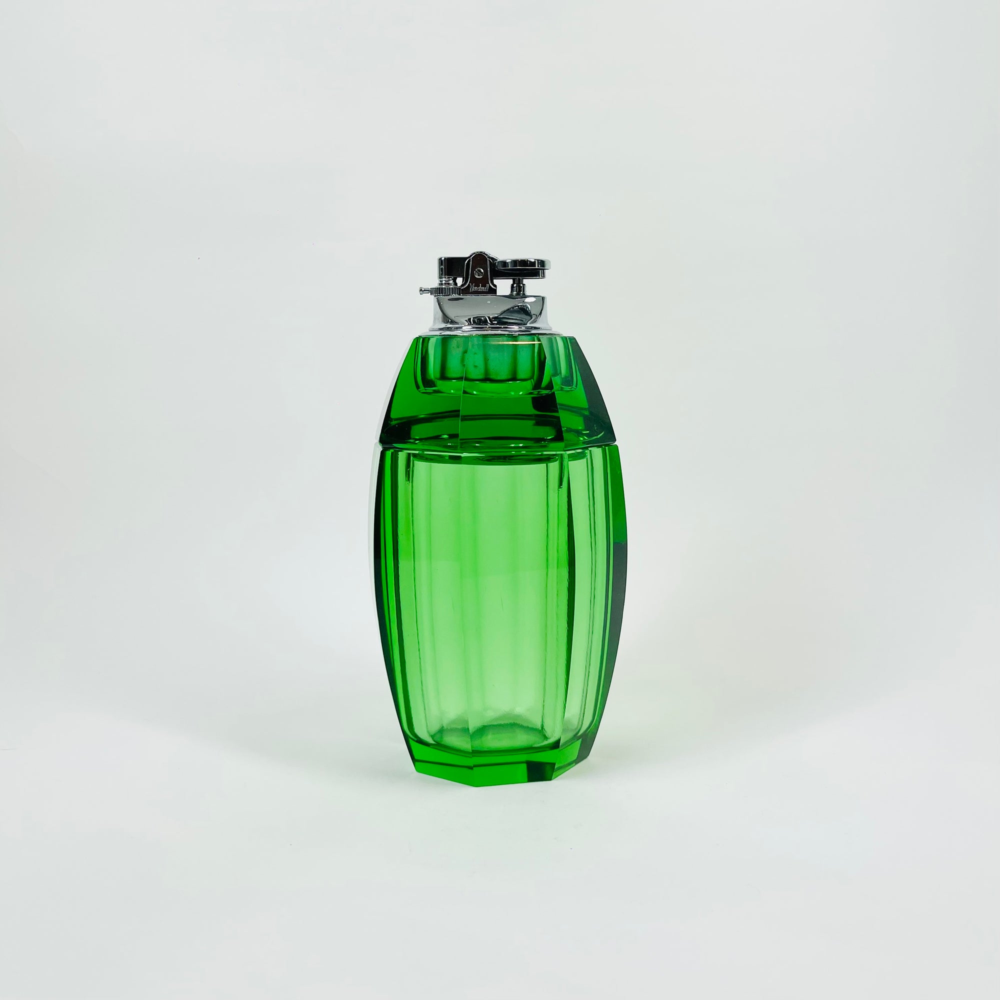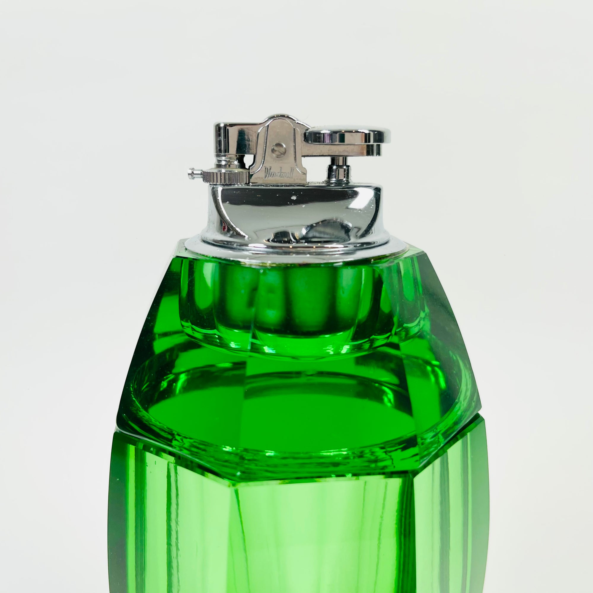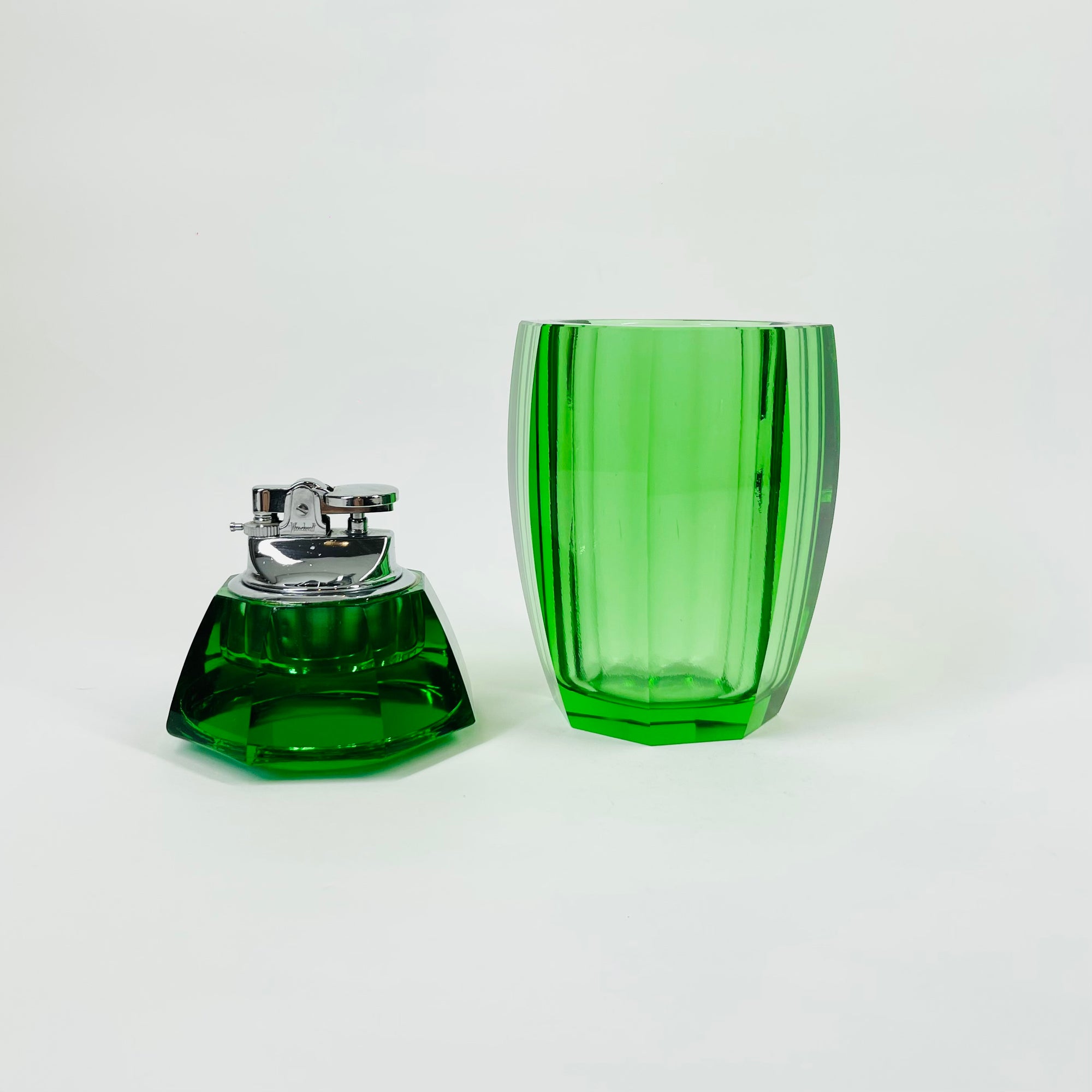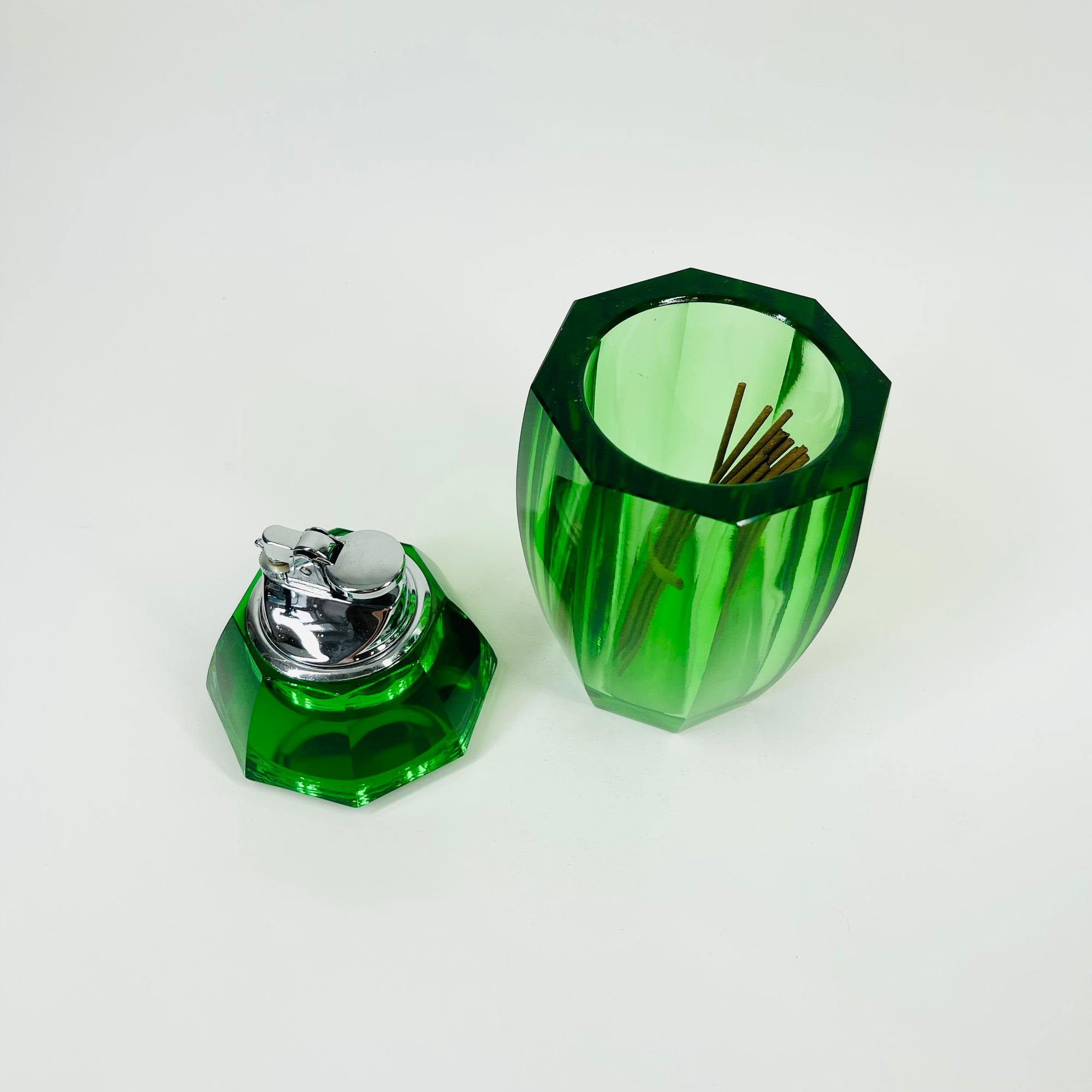Extremely rare 1950s faceted Czech green glass lighter box with cigarette compartment.