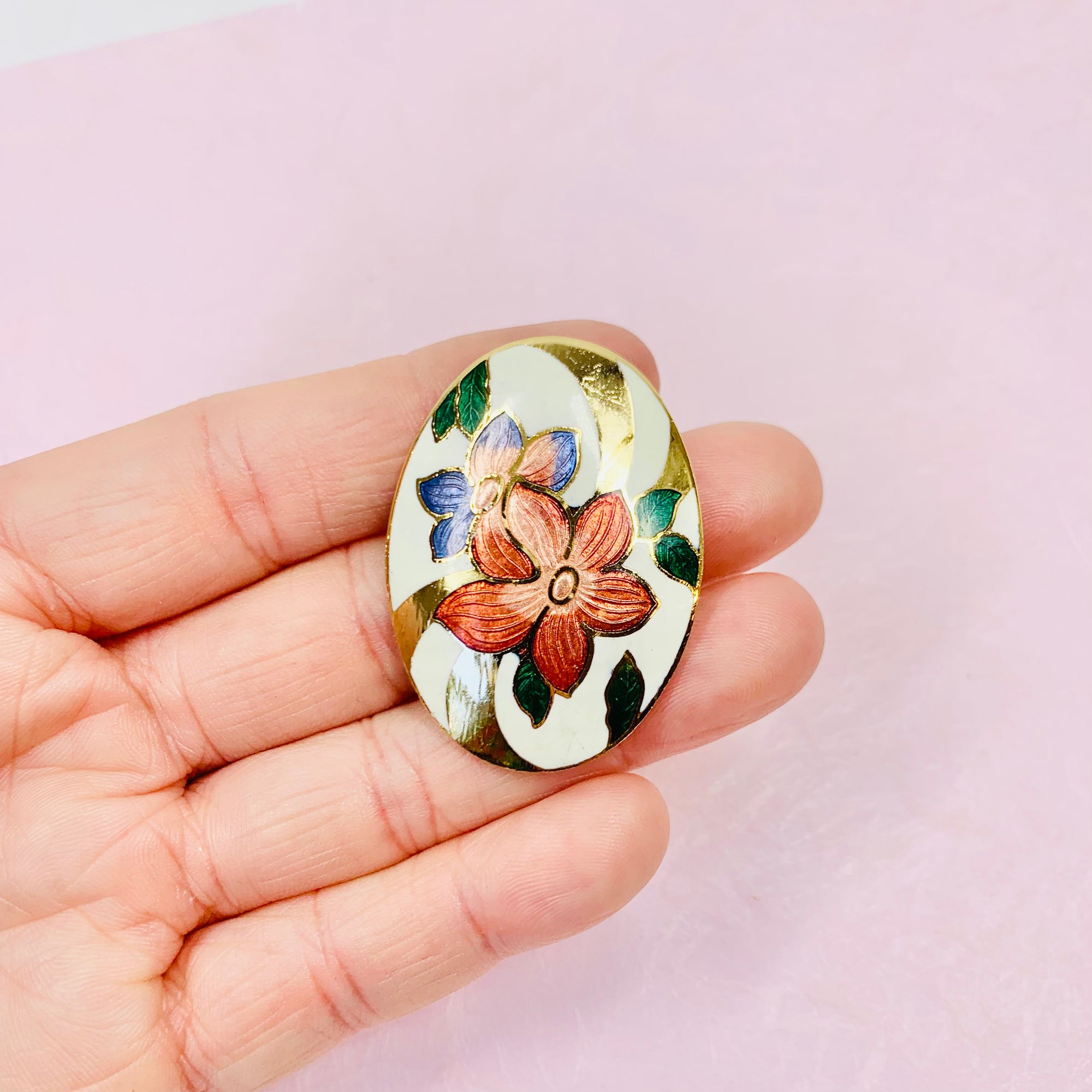 1950s JAPANESE ENAMEL FLORAL BROOCH