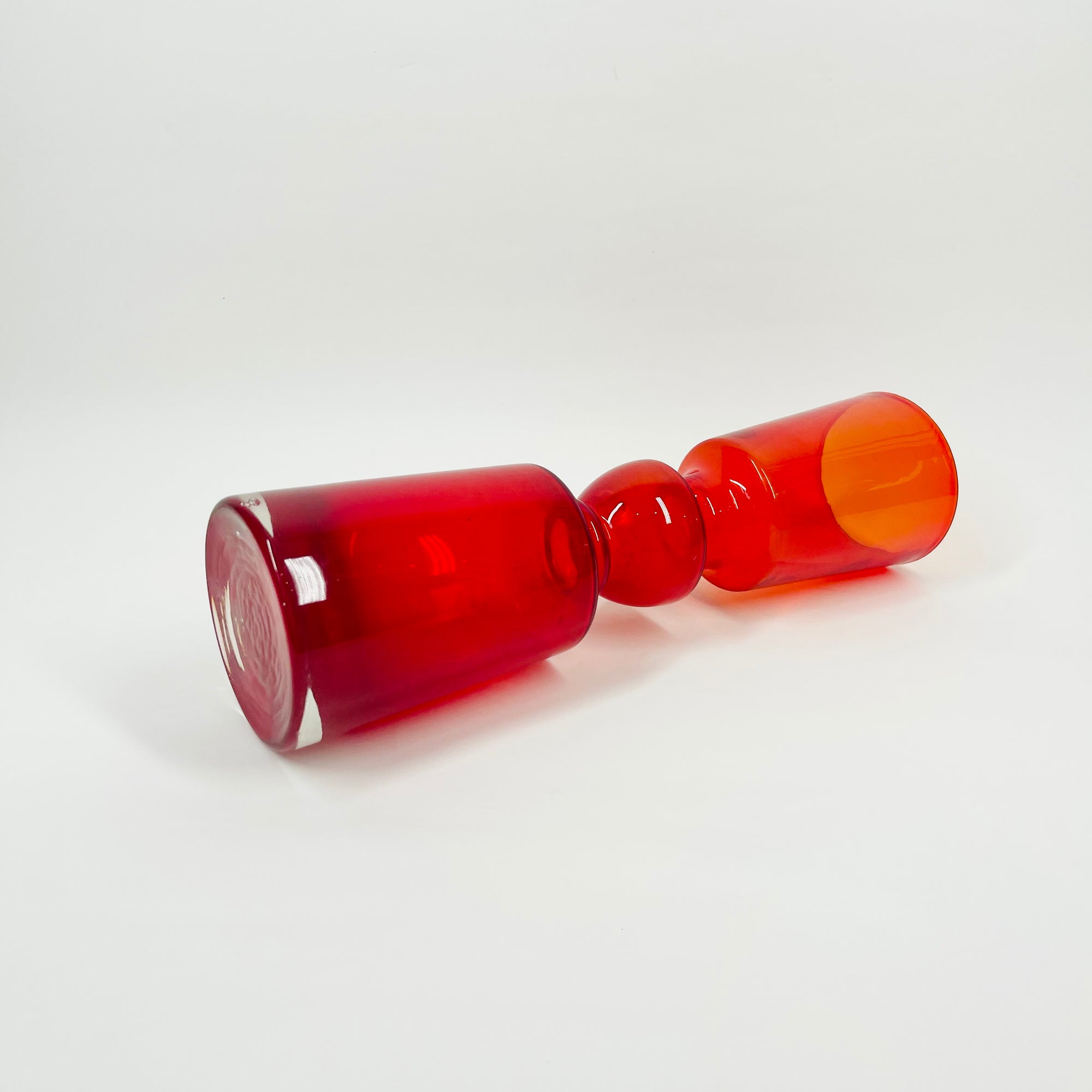 Rare 1960s Finnish red ombre glass Space Age hoop glass vase by Tamara ALADIN for RIIHIMAEN Lasi.
