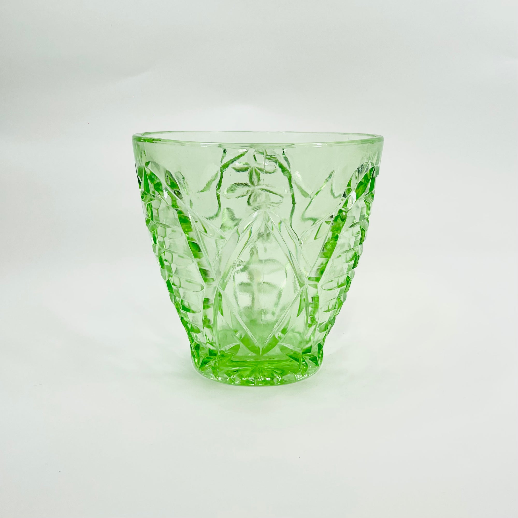 ANTIQUE ART DECO PRESSED GREEN DEPRESSION GLASS VASE