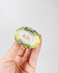 Antique Chinese hand painted yellow porcelain snuff bottle with jade stopper