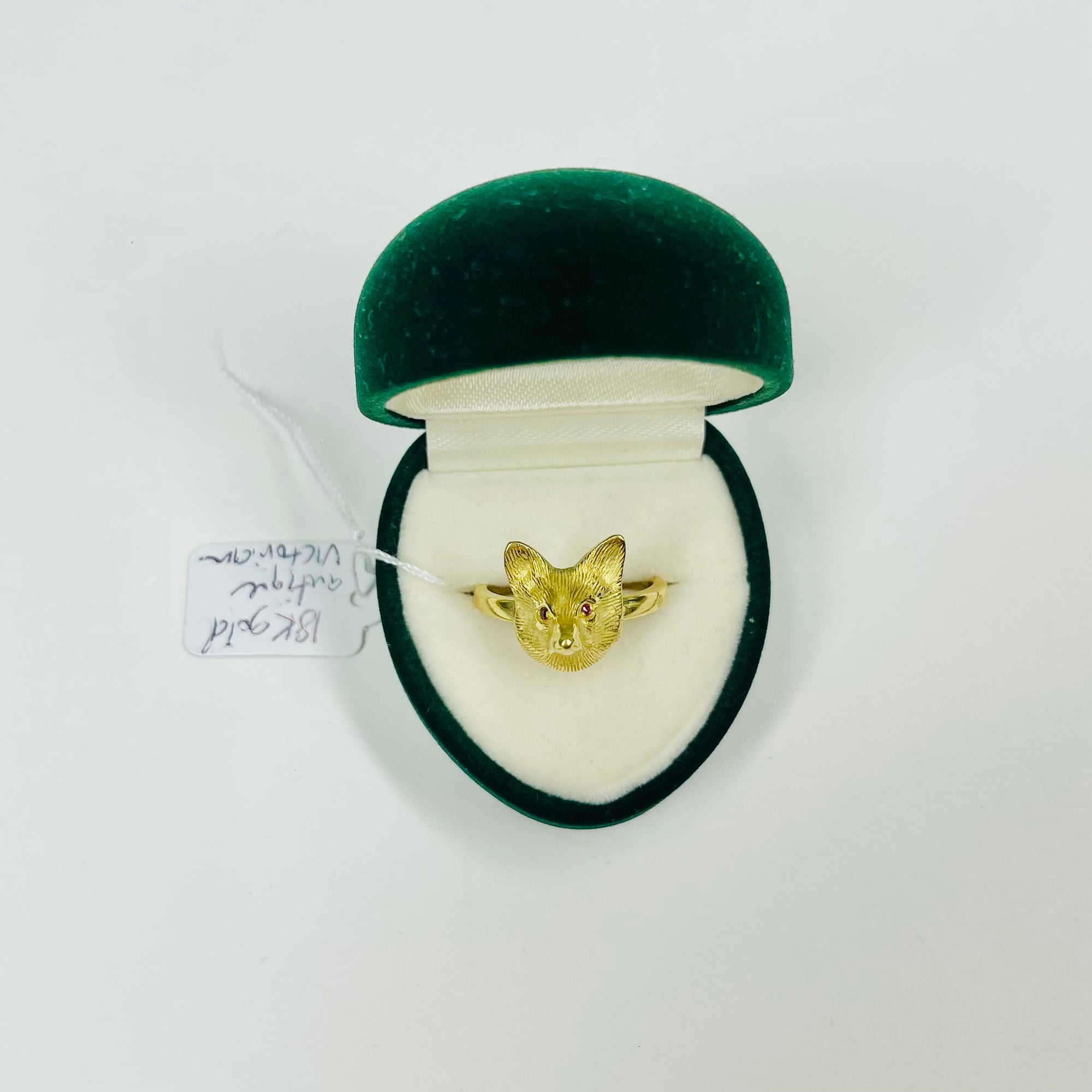 Extremely rare antique 15K yellow gold fox ring with ruby eyes.