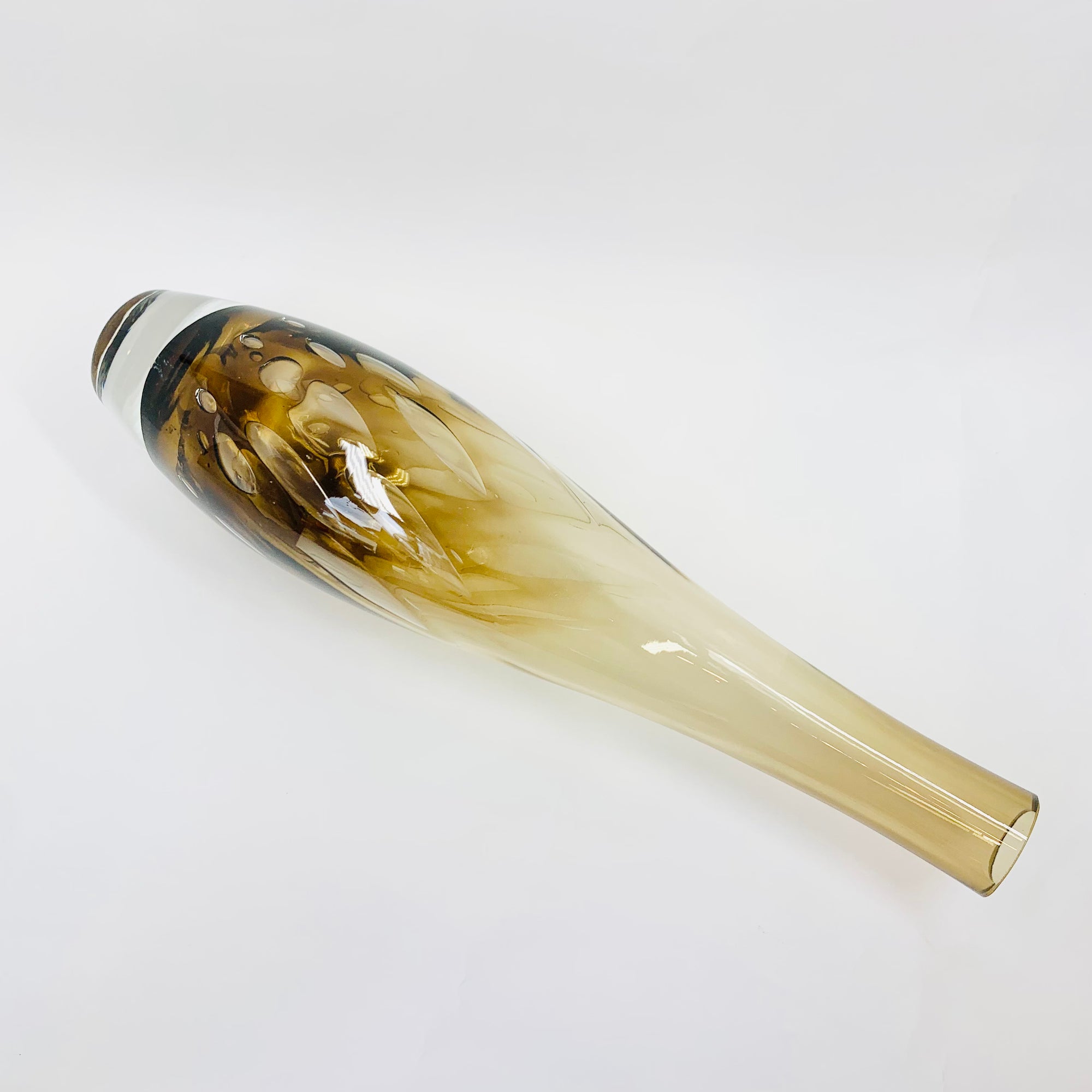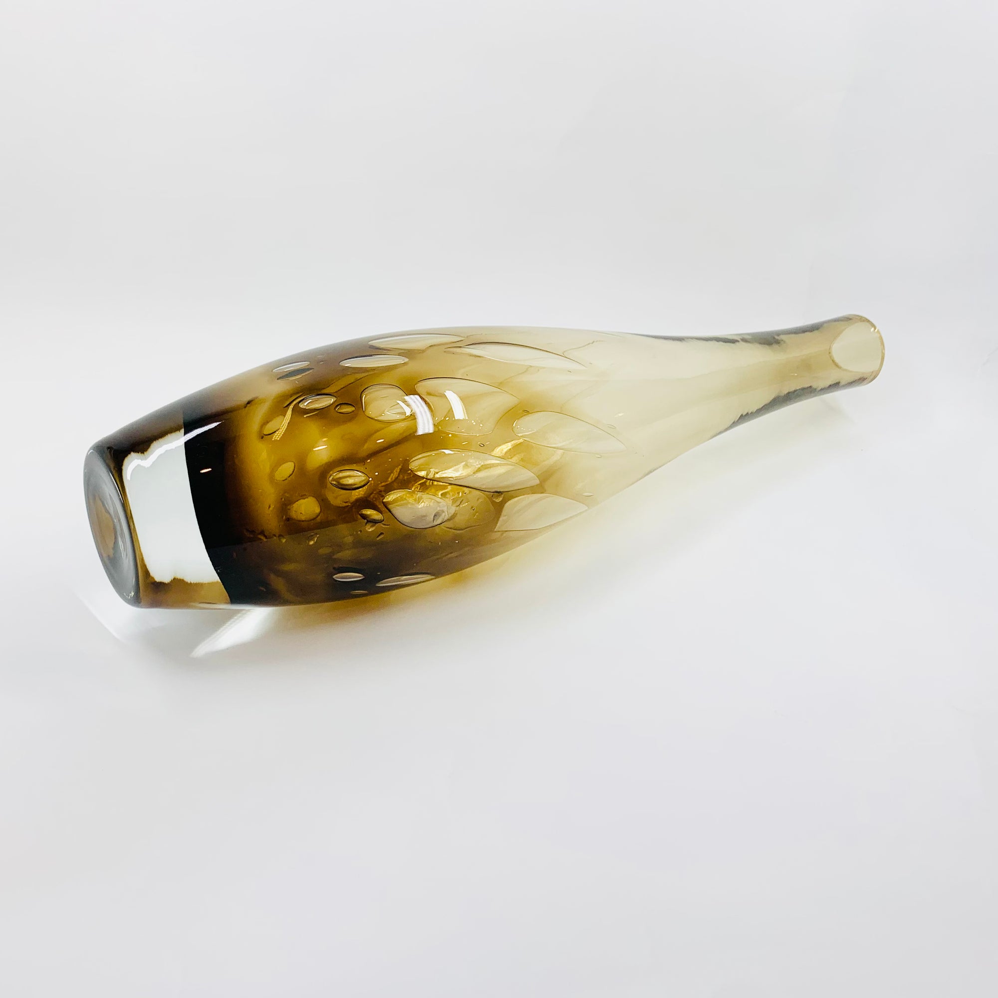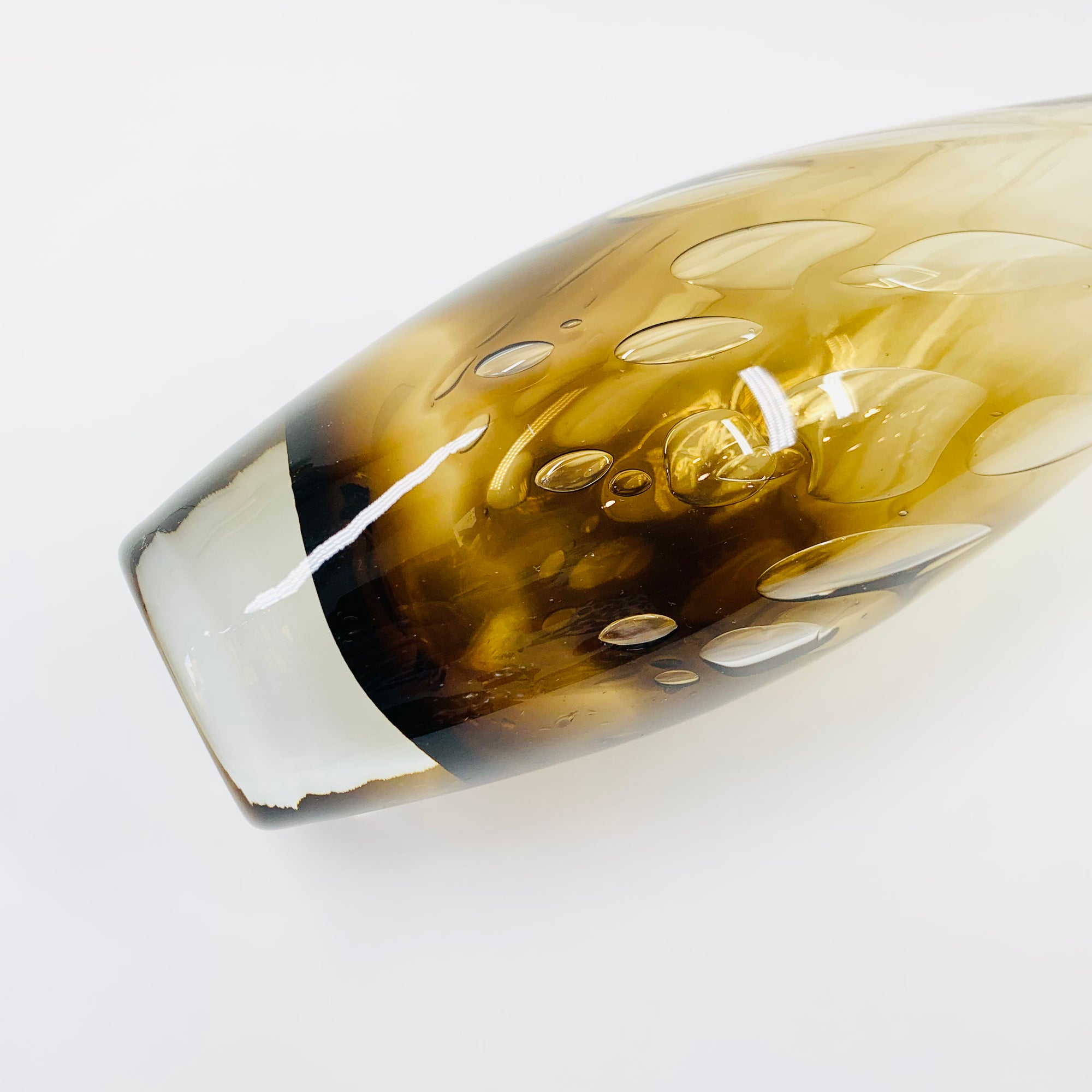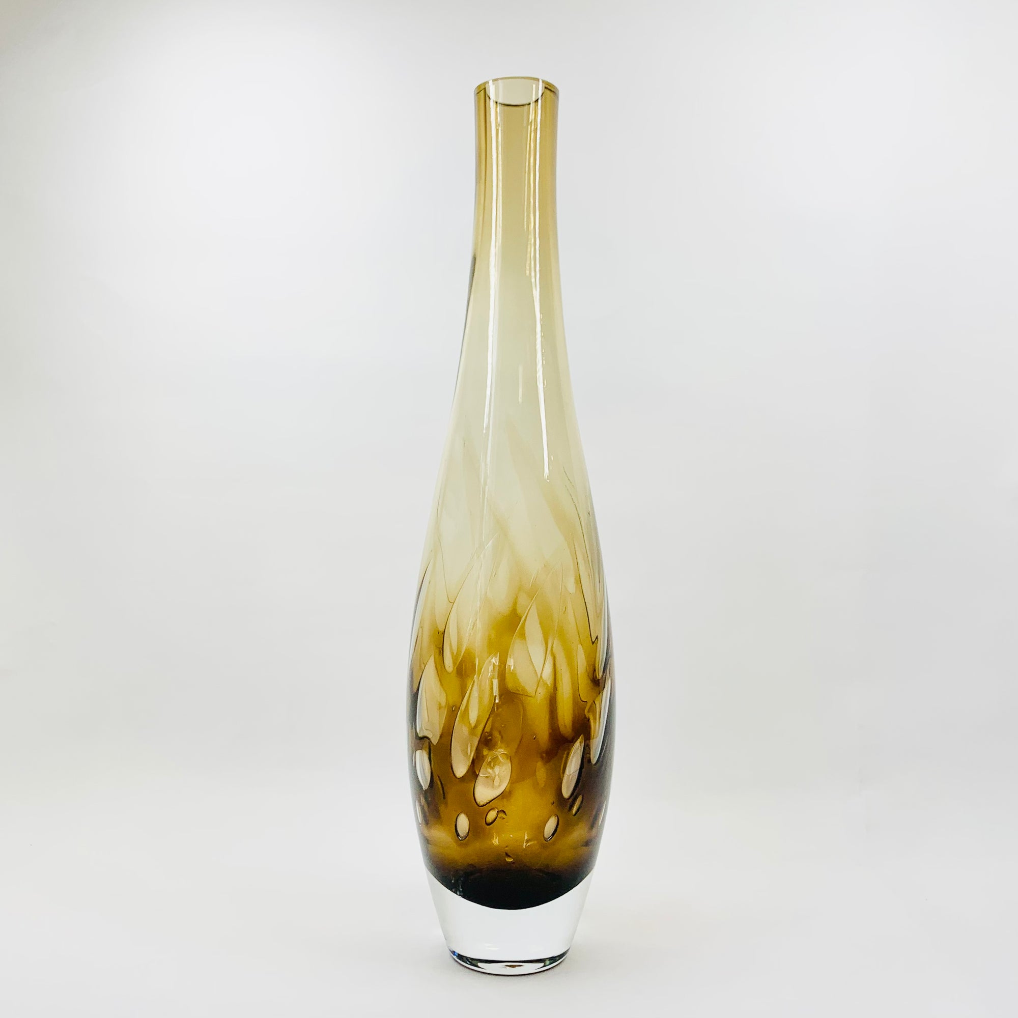 Stunning vintage Czech hand made gold brown mottled glass bottle vase